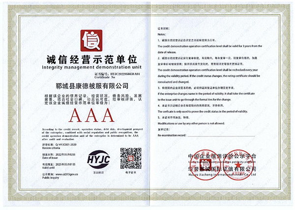 3A級誠信經(jīng)營示范單位