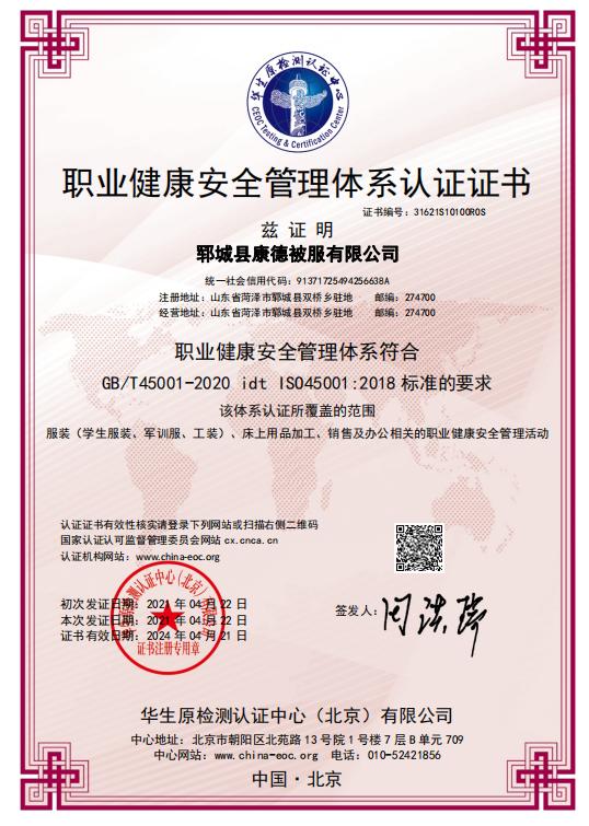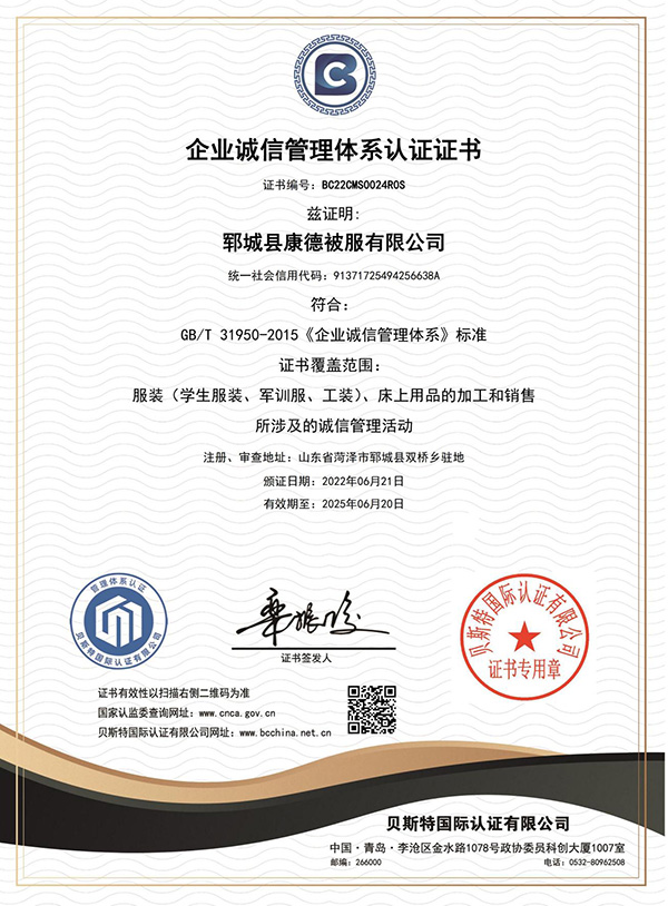 鄆城縣康德被服有限公司能根據(jù)各學(xué)校需求,為其提供棉被、床墊等學(xué)校床上用品,及校服定制、軍訓(xùn)服定制等業(yè)務(wù)!