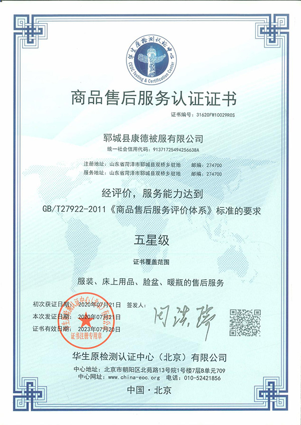 售后服務(wù)體系認(rèn)證書